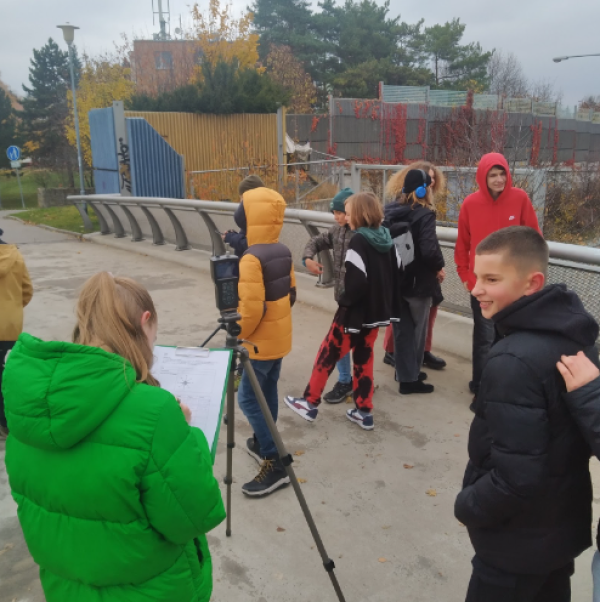 Obrázek 2 - Žáci získávají data o kvalitě ovzduší na jimi vytipovaných místech a následně je analyzují.