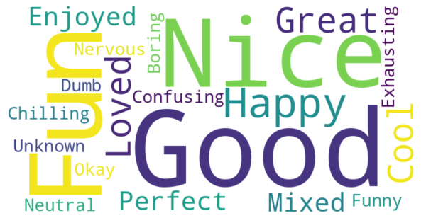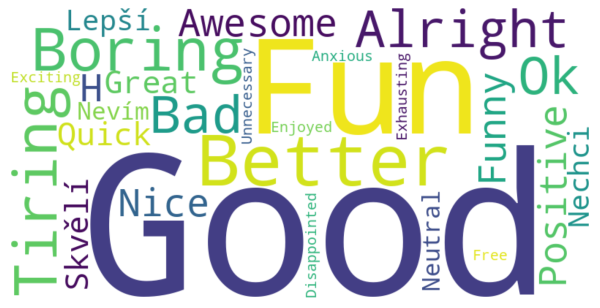 Obrázek 5 - Word cloud vytvořený ze zpětné vazby žáků z prvního projektového týdne v Brně na otázku What are you feelings about the project week?