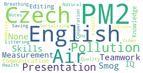 Obrázek 6 - Word cloud vytvořený ze zpětné vazby žáků z prvního projektového týdne v Brně na otázku What 3 things you learned during the project week?