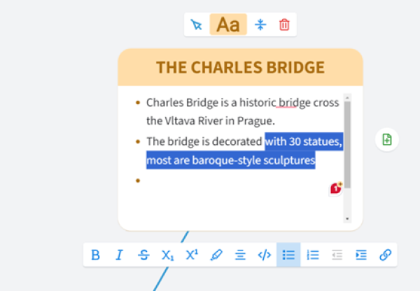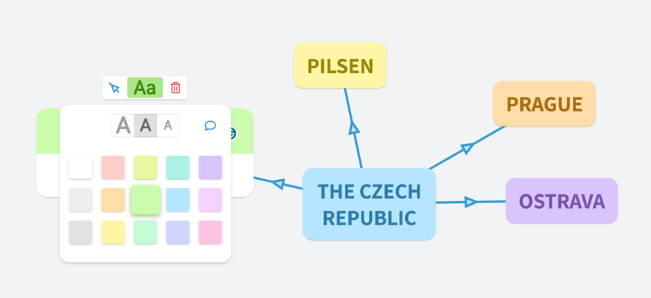 Nyní, když už znáte název oblasti, zapište si jej do své bubliny. Pro lepší přehlednost zároveň vyberte barvu svých bublin. Kliknutím na ikonu Aa se otevře výběr různých barev.