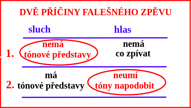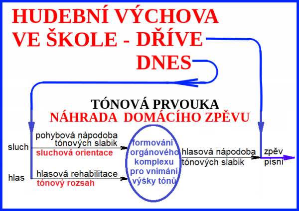 V předškolní i školní praxi stále převládá názor s oblibou předkládaný jako parafráze výroku J. A. Komenského „zpívat se naučíte zpíváním“. A tak se za vyhovující považuje postup, kdy vyučující začne na nástroji hrát písničku a děti se hlasem přidávají. Stranou pozornosti zůstává fakt, že zpěv mnoha dětí bývá falešný. Příčiny nedokonalé tónové nápodoby ovšem mají svoje kořeny v raném dětství a často je nelze napravit jenom prostým společným opakováním zpěvu stále dokola.