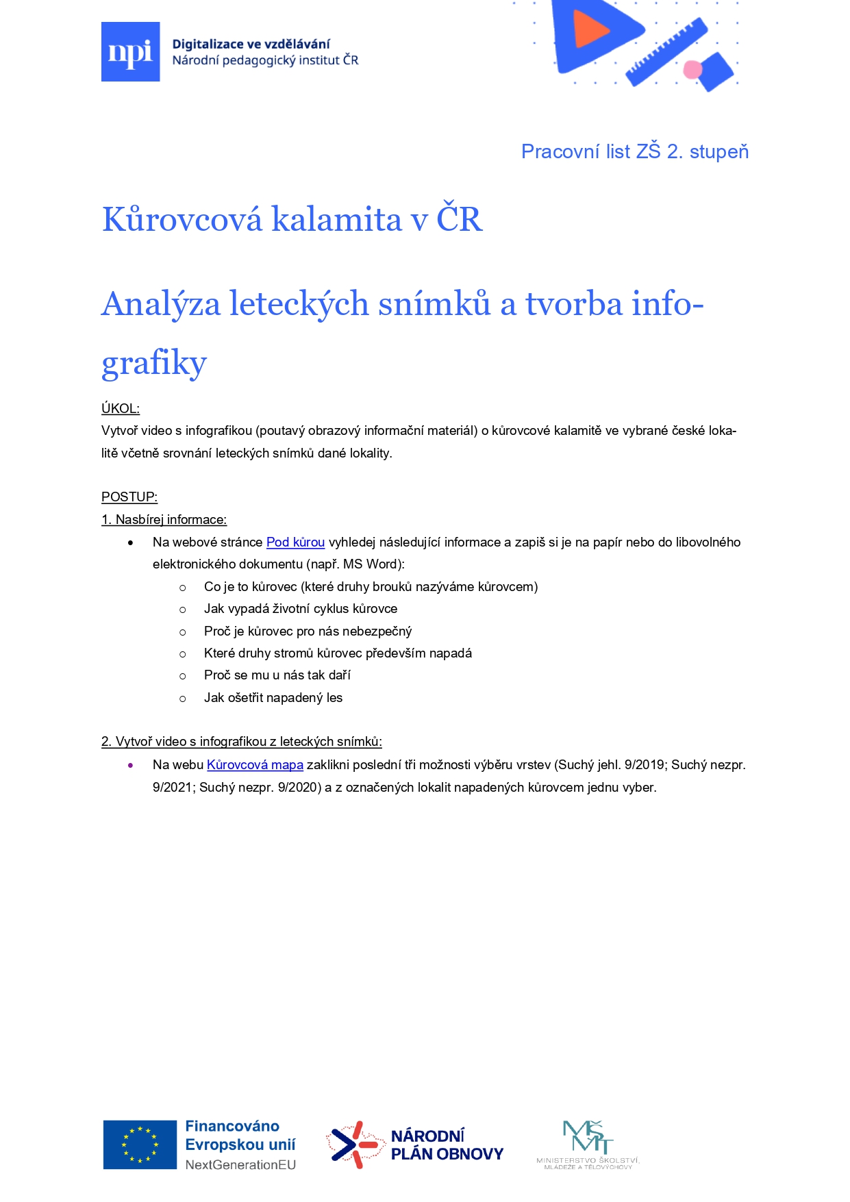 Celkově aktivita splnila svůj účel – žáci si uvědomili rozsah kůrovcové kalamity a zároveň si procvičili digitální kompetence. Do budoucna by bylo žádoucí ponechat více času na přípravu, případně zařadit krátkou demonstraci technického postupu před samostatnou prací.