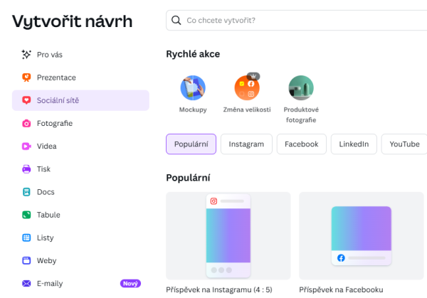 Metodická poznámka: Návod na to, kde najdete vhodné šablony, se nachází v printscreenu obrazovky Canvy níže: