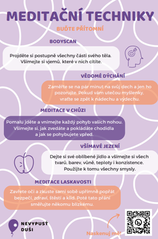 Žák vyhledává informace o pojmu mindfulness s cílem rozšířit si své znalosti a povědomí o tématu. Zároveň posuzuje jejich důvěryhodnost a dle zadaných kritérií zpracuje výstup.