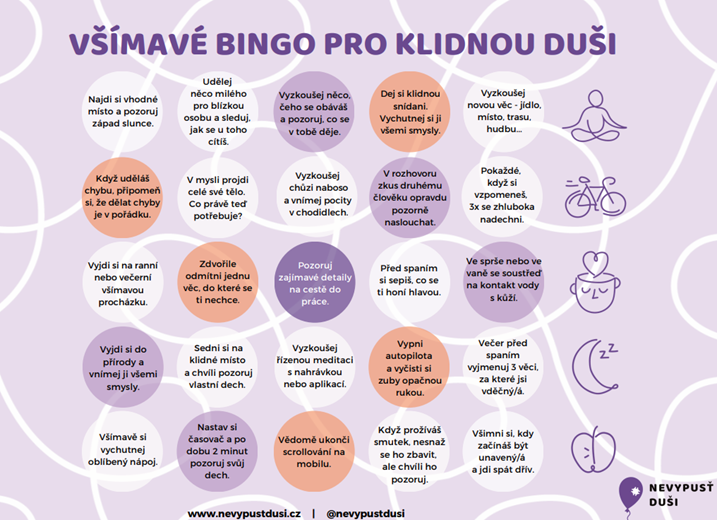 Učitel na závěr žákům rozdá „Všímavé bingo“ pro hlubší upevnění probíraného tématu.