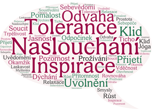 Pojďme dnešní hodiny zakončit vytvořením vlastní mapy – wordartovým plakátem na téma MINDFULNESS. Sdílejte postupně každý z vás jedno slovo, které vás k tématu napadá.