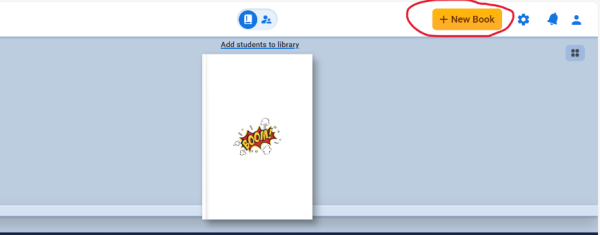 Žáci se přihlásí do webové aplikace https://bookcreator.com/. Pokud s aplikací ještě nepracovali, je nutné se nejprve zaregistrovat, my jsme k tomu využili školní mailové adresy. V aplikaci žáci kliknou na políčko „nová kniha“ (new book):