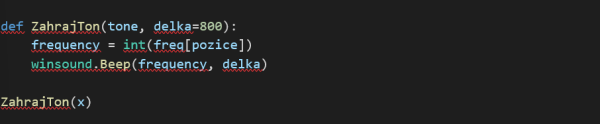 6. Vytvoříme funkci, která bude přehrávat tóny na základě jejich frekvencí, a vyzkoušíme, zda nám generátor funguje.