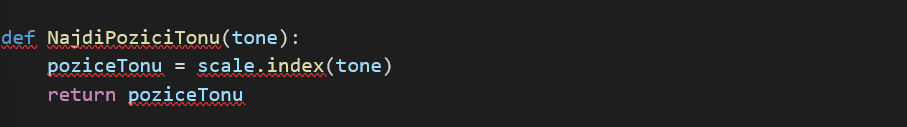 4. Vytvořte funkci, která bude hledat index tónu a podle toho ji přiřadí frekvenci z proměnné scale.