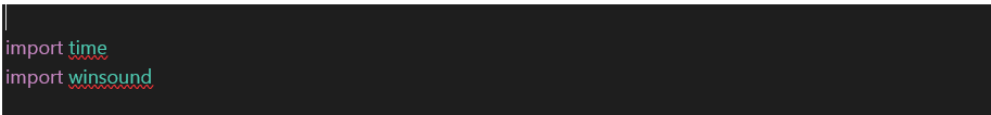 Python je velmi oblíbený díky svým knihovnám. Knihovny jsou předpřipravené řešení, které můžeme libovolně používat. Python má obrovské množství knihoven např. pro práci s časem a audiem. My si do našeho programu importujeme time a winsound: