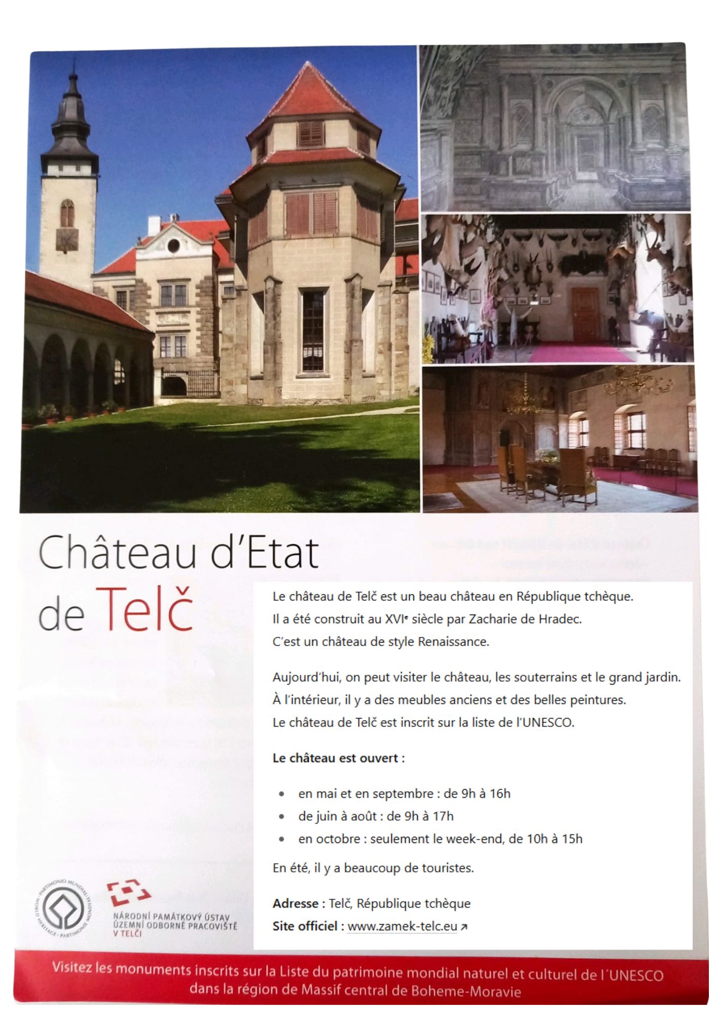 4. Combien coûte l’entrée? (Tato informace v letáku schválně chybí, je potřeba ji vyhledat na internetových stránkách zámku ZDE).