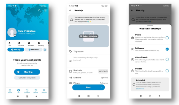 - Uprav soukromí na požadovanou úroveň (doporučujeme úroveň Followers, kdy tvůj výlet uvidí jen lidé, kteří tě požádají o přístup a budou tví sledující, nebo Private).