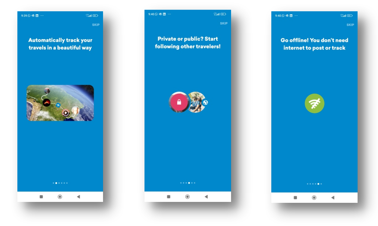 - Aplikace tě vyzve k vytvoření první „cesty“ – klikni na New Trip.