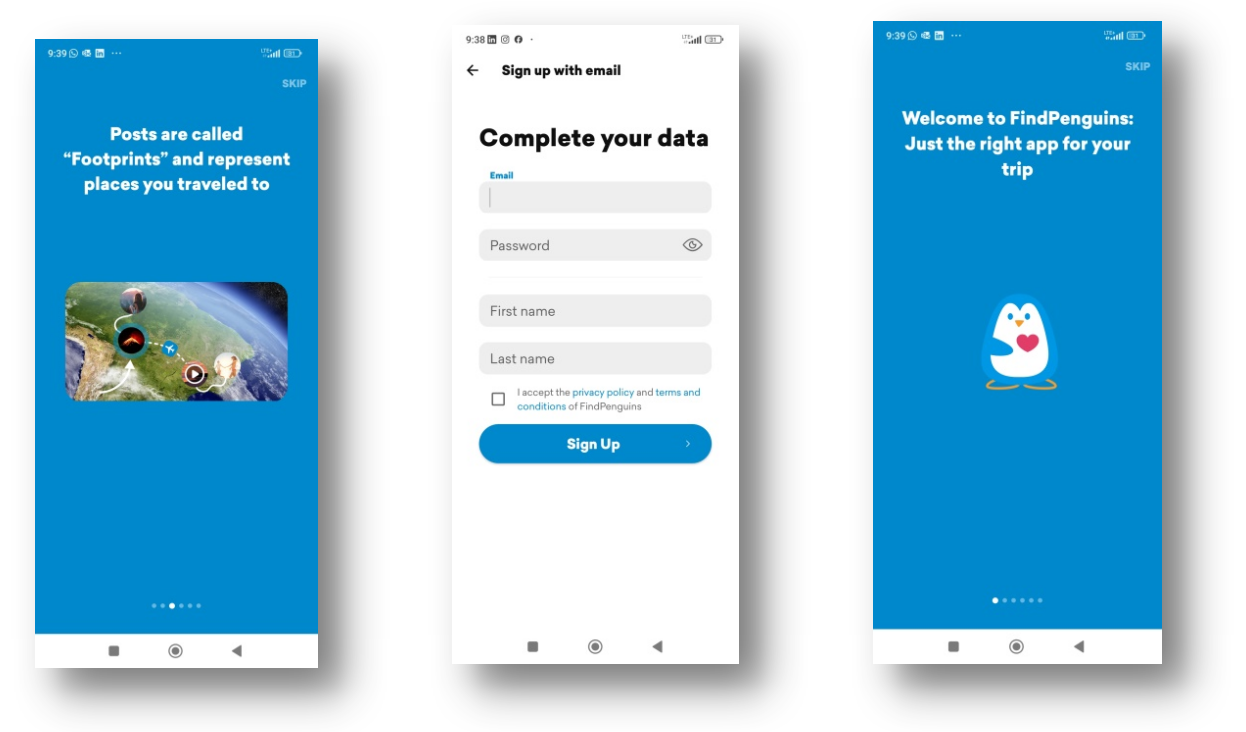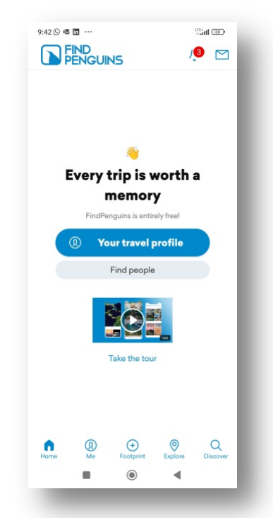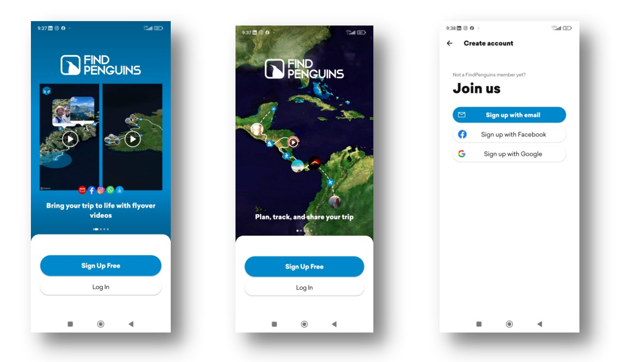 Aplikace Find Penguins slouží k zaznamenávání cest, výletů a zážitků prostřednictvím tzv. „pingů“, tedy krátkých příspěvků s fotografiemi, textem a GPS polohou.