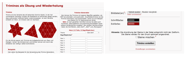 Před hodinou je potřeba připravit si materiál. Je možné využít stránku zdarma (bez nutnosti registrace): https://schule.paul-matthies.de/Trimino.php